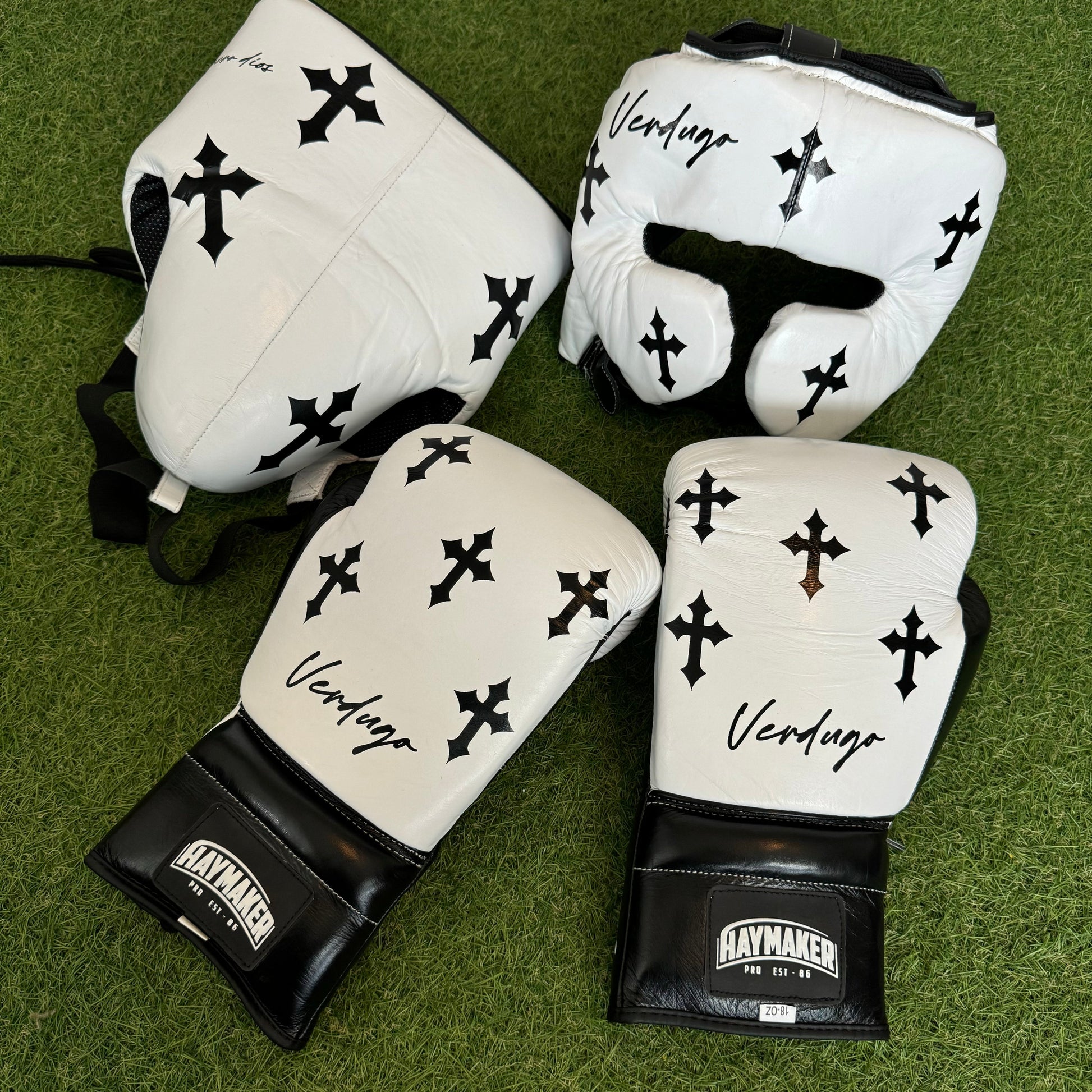 BLK & WHITE| CRUCIFIX | BOXING GLOVES & SPARRING SET | 100% LEATHER