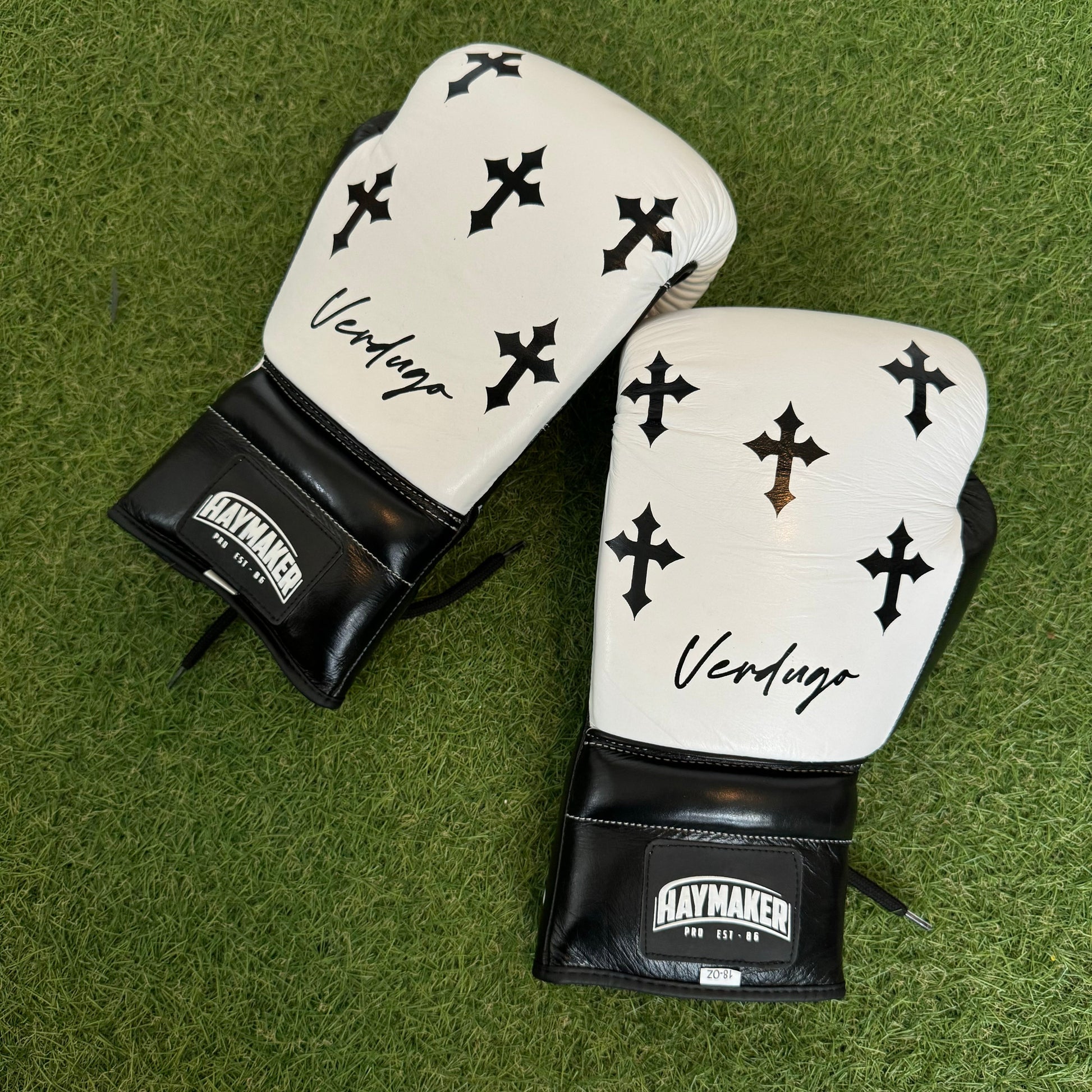 HM CRUCIFIX WHITE & BLACK | PRO ELITE GLOVES 100% LEATHER
