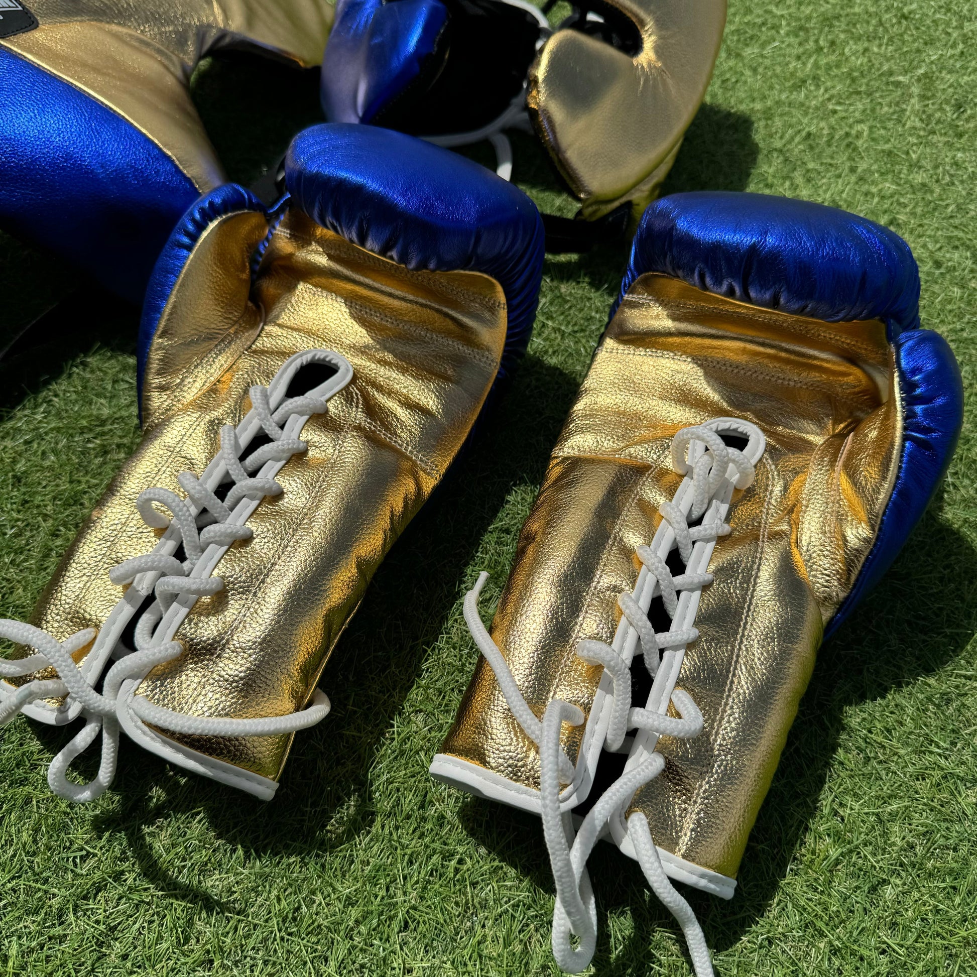 METALLIC BLUE & GOLD | BOXING GLOVES & SPARRING SET | 100% LEATHER