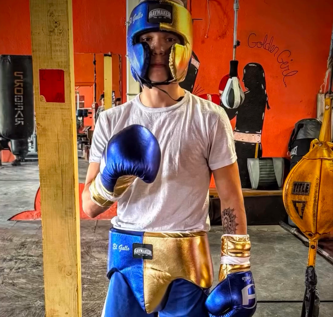 METALLIC BLUE & GOLD | BOXING GLOVES & SPARRING SET | 100% LEATHER